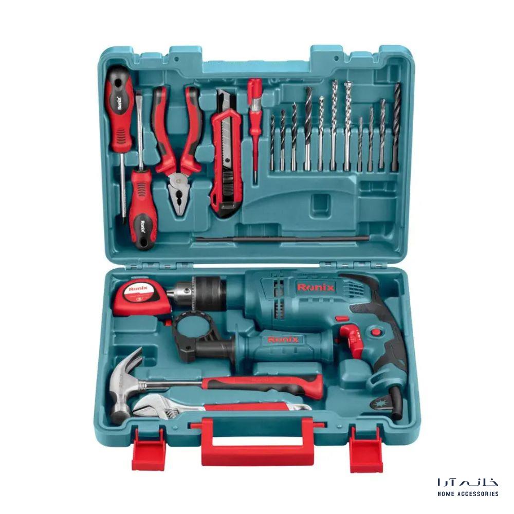 کیت دریل مدل RS-0001 رونیکس، ترکیبی از یک دریل چکشی 650 وات و مجموعهای از ابزارهای دستی و متههای مختلف است. این ست در یک کیف ضدضربه قرار گرفته و برای مصارف خانگی و کارگاهی طراحی شده است.