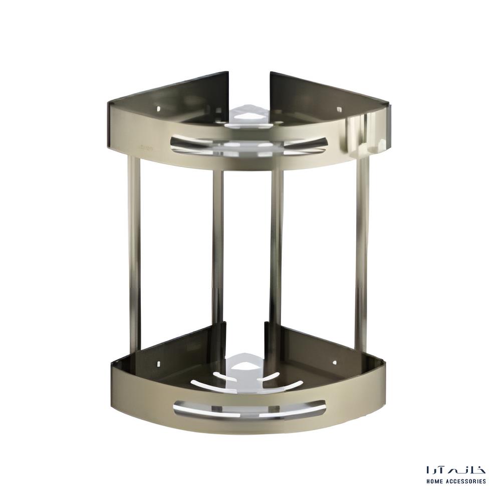 شلف کنج دوطبقه مدل 2012/BN اسمارت با رنگ نیکل خشدار، طراحی مدرن و مقاوم برای نظمدهی به فضای حمام و سرویس بهداشتی. ساختهشده از استنلس استیل ضدزنگ، مقاوم در برابر رطوبت، بخار و تغییر رنگ.