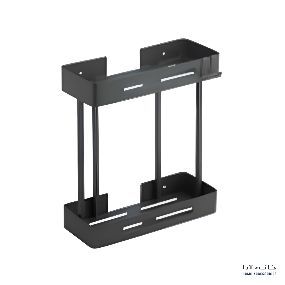 شلف دیواری دوطبقه مدل 2022/GREY اسمارت با رنگ طوسی، طراحی مدرن و کاربردی برای نظمدهی به فضای حمام و سرویس بهداشتی. ساختهشده از استنلس استیل ضدزنگ، مقاوم در برابر رطوبت، بخار و تغییر رنگ.