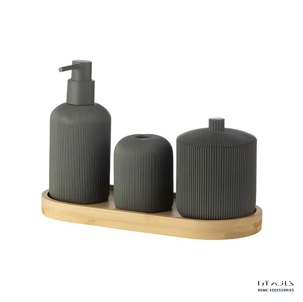 ست اکسسوری 4 تکه رزین مدل AD-300 C/Gray برند اسمارت، این ست اکسسوری سرویس بهداشتی و حمام شامل جا مایع، جا مسواکی، سینی و ظرف لوازم بهداشتی، با رنگ طوسی و طراحی رزینی؛ ساختهشده از استیل مقاوم، مناسب برای نظمدهی و زیباسازی سرویس بهداشتی.
